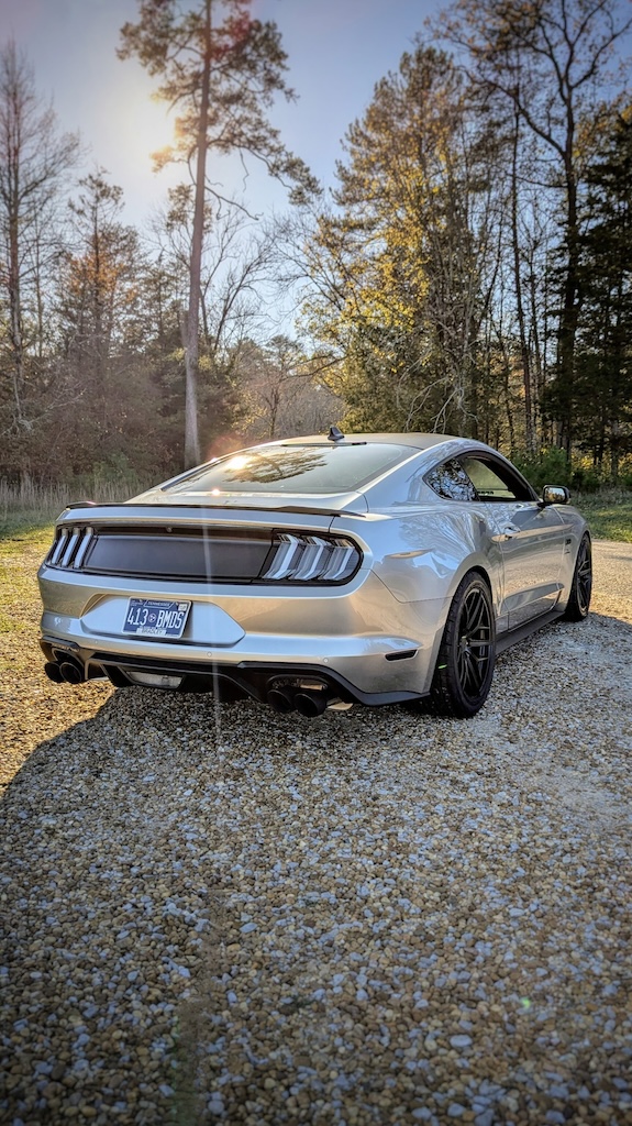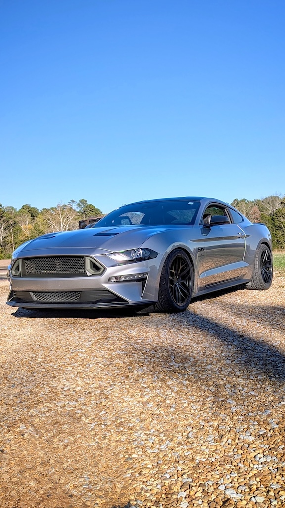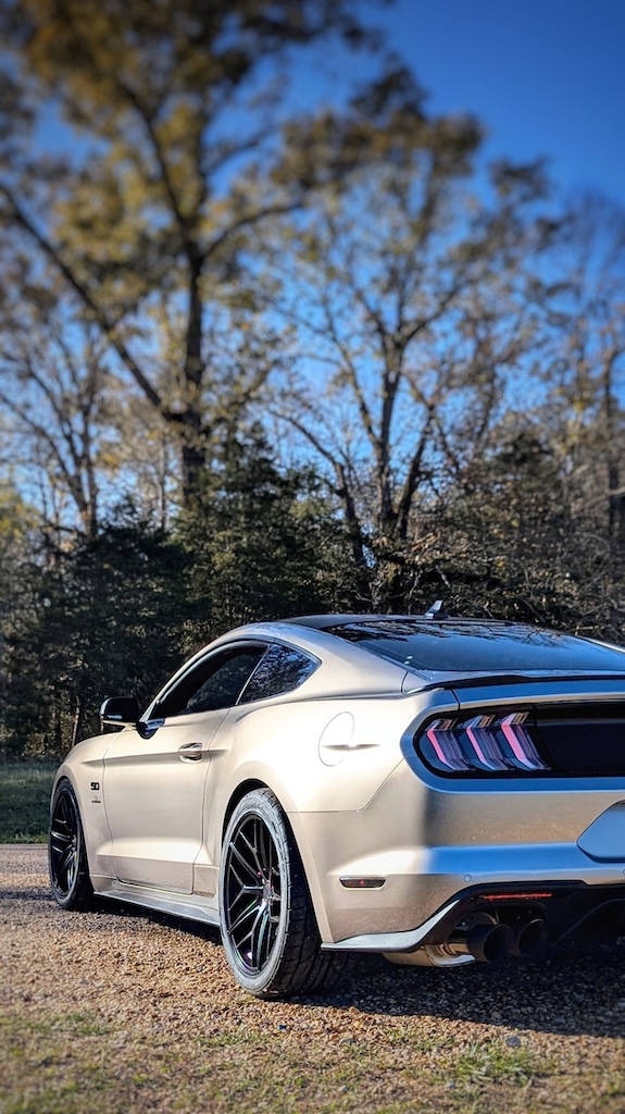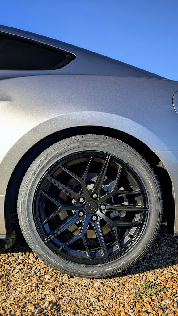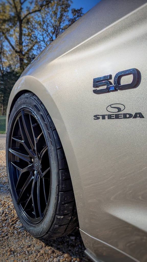 I’ve been saying since I bought the car that I wasn’t going to replace the wheels and tires until the tires were spent. As it turns out, I got tired of losing traction before I had time to wear them out. Let’s face it, 235/55/18s are way too narrow for a 400+ HP sports car. Luckily, the folks at Steeda presented me with a solution to the problem; their satin black Trident 19x10s wrapped in 285/35/19 Nitto NT555 G2s.