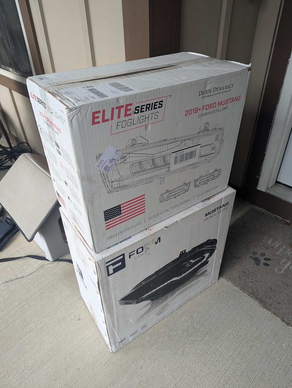 Received a welcome delivery from Steeda this morning. I’d been holding off on installing my Cervini grills until I purchased my new headlights and turn signals. Because I did NOT want to take my front bumper off more than once.